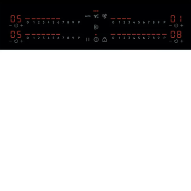 Potencia (W) y diámetro zona frontal izquierda: 2300 / 3200 W / 210 mm - Potencia (W) y diámetro zona trasera izquierda: 2300 / 3200 W / 210 mm - Potencia (W) y diámetro zona delantera derecha: 1400 / 2500 W / 145 mm - Potencia (W) y diámetro zona trasera derecha: 1800 / 2800 / 180 mm