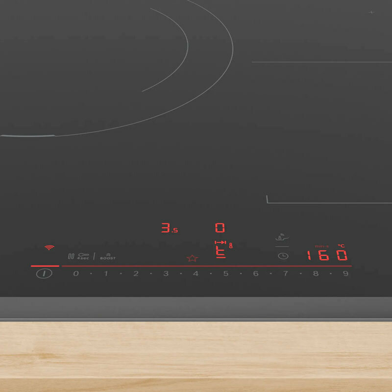 *¡¡Home connect:!! Home Connect, controla tu placa desde un dispositivo móvil. *¡¡Direct Select:!! ¿A veces te pierdes con los ajustes de la placa de cocción? Con DirectSelect no te pasará, porque puedes seleccionar las zonas de cocción y ajustar la potencia de forma directa, rápida y sencilla mediante el intuitivo panel de control y la tira luminosa indicadora. *¡¡PerfectFry Plus:!! Ahora es más fácil que nunca con PerfectFry Plus. Permite regular automáticamente la temperatura perfecta para todas tus recetas. Solo tienes que elegir el plato en una de nuestras aplicaciones de recetas o preguntarle a Alexa la temperatura adecuada. La temperatura seleccionada se enviará a la placa y podrás empezar a cocinar de inmediato. Gracias a su avanzada tecnología de sensores, controla automáticamente la temperatura de la sartén para que los alimentos queden en su punto y no se quemen. *¡¡CombiInduccion:!! ¿Tienes invitados y necesitas cocinar a lo grande? La función CombiInducción te permite combinar dos zonas de cocción rectangulares formando una sola de gran tamaño. Así tendrás más espacio y flexibilidad para utilizar ollas, fuentes de asado o lo que haga falta. *¡¡Favorito:!! Las tareas rutinarias en la cocina, como cocer unos huevos duros perfectos en el tiempo justo, ahora son más fáciles que nunca. Con Favorito, puedes guardar tus ajustes preferidos, como el nivel de potencia y el tiempo de cocción. También podrás controlar la luz de la campana desde la placa. Solo tienes que vincular la placa de cocción a tu cuenta de Home Connect para cocinar de una manera más fácil. *¡¡Función Pausa:!! Por ejemplo, porque el bebé llora o llaman a la puerta o al teléfono. Con la función de pausa, puedes detener la cocción y bloquear la placa. Así puedes atender cualquier cosa que surja o limpiar la placa de cocción sin dejar el fuego encendido. Simplemente, continúa cocinando al cabo de 10 minutos o volviendo a pulsar sobre la función.