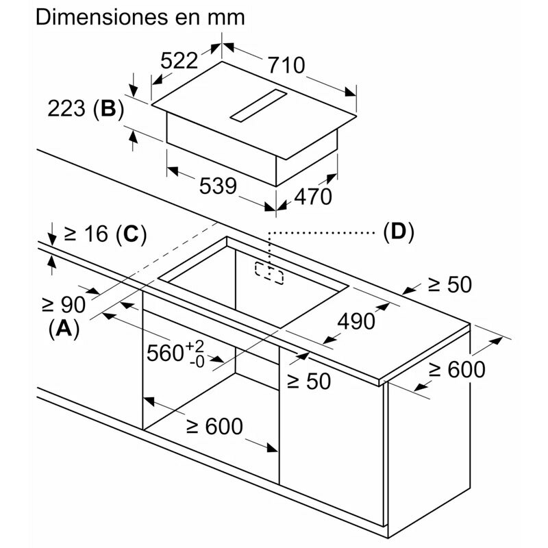 *¡¡Placa con extractor integrado:!! La placa con extractor integrado combina lo mejor de nuestras placas de inducción y campanas extractoras. Al estar integrado en la superficie de la placa, el extractor elimina el humo y los olores justo donde se originan. De este modo, no necesitas una campana y puedes usar ese espacio para poner más armarios o tener una cocina más despejada. *¡¡Direct Select:!! ¿A veces te pierdes con los ajustes de la placa de cocción? Con DirectSelect no te pasará, porque puedes seleccionar las zonas de cocción y ajustar la potencia de forma directa, rápida y sencilla mediante el intuitivo panel de control y la tira luminosa indicadora. *¡¡PerfectFryplus:!! El secreto para freír es mantener el aceite a la temperatura adecuada. Si está demasiado caliente, se quemará y estropeará tu plato. Con PerfectFry Plus, ya no tendrás que preocuparte por eso. El sensor PerfectFry Plus muestra y controla continuamente la temperatura de la sartén para evitar que se queme el aceite. Puedes elegir entre 11 temperaturas predeterminadas, de 70 a 220 ºC, para obtener resultados perfectos en todo tipo de platos. *¡¡CombiInduccion:!! ¿Tienes invitados y necesitas cocinar a lo grande? La función CombiInducción te permite combinar dos zonas de cocción rectangulares formando una sola de gran tamaño. Así tendrás más espacio y flexibilidad para utilizar ollas, fuentes de asado o lo que haga falta. *¡¡Función AutoON:!! ¿Otra vez olvidaste encender el extractor? Deja que tu placa lo haga por ti con la función AutoOn. El extractor se enciende cuando empiezas a cocinar, sin que tengas que hacer nada. Así, tu cocina siempre estará libre de humos y olores.