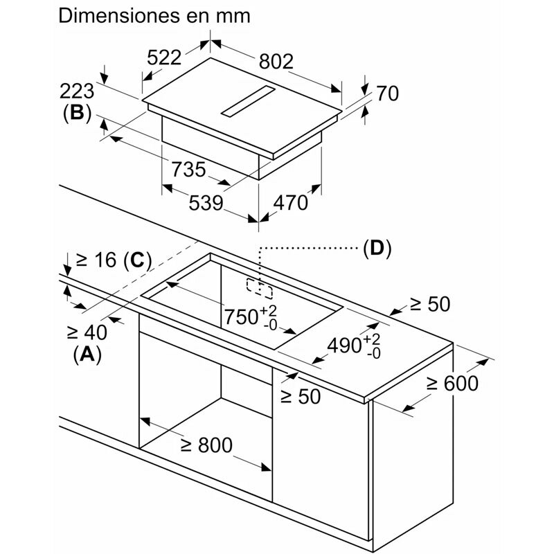 *¡¡Placa con extractor integrado:!! La placa con extractor integrado combina lo mejor de nuestras placas de inducción y campanas extractoras. Al estar integrado en la superficie de la placa, el extractor elimina el humo y los olores justo donde se originan. De este modo, no necesitas una campana y puedes usar ese espacio para poner más armarios o tener una cocina más despejada. *¡¡TouchSelect:!! El control TouchSelect permite regular la zona de cocción con gran facilidad. Solo tendrás que seleccionar el nivel de potencia necesario. Además, gracias a las funciones Memoria e Inicio Automático la cocción será aún más sencilla. *¡¡CombiZone:!! Gracias a CombiZone, si alguna vez necesitas más espacio para un recipiente de tamaño o forma especial, como una fuente para asar, con solo pulsar un botón podrás combinar dos zonas de cocción individuales en una única zona grande con un nivel de calor combinado. *¡¡Función Sprint:!! Cuando tienes poco tiempo para cocinar, la función Sprint es tu mejor aliada. Esta práctica función añade un 50 % de potencia adicional a tu placa de inducción para calentar todo más rápido. Así puedes hervir grandes cantidades de agua y calentar tus alimentos casi un 35 % más rápido que a máxima potencia. *¡¡Inicio rápido:!! Inicio rápido: coloca el recipiente y al encender la placa selecciona la zona y solo tienes que pulsar sobre el nivel de potencia deseado.