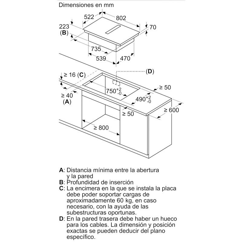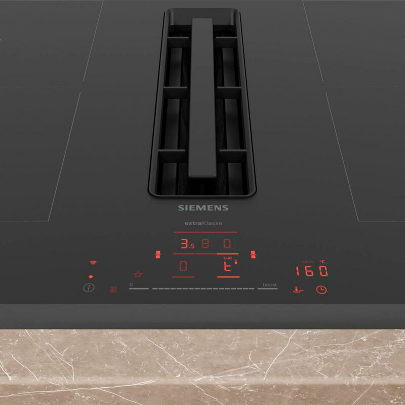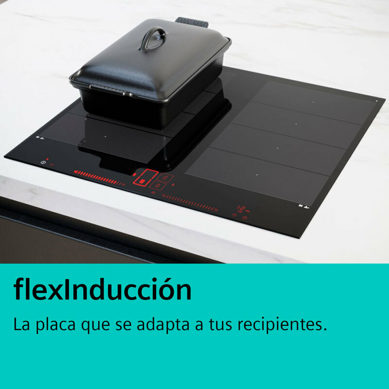 *¡¡FlexInduccion:!! La función flexInducción consiste en una zona de cocción flexible que se adapta automáticamente a recipientes grandes (de hasta 24 cm de diámetro). La placa detecta el tamaño del recipiente y activa la superficie de inducción necesaria para obtener un calentamiento uniforme. También es perfecta para usar planchas o teppanyakis de hasta 40 cm de largo. *¡¡Campana super silenciosa:!! Mientras cocinas, puede que te apetezca conversar con la familia o los amigos, o escuchar un pódcast. Con nuestras campanas súper silenciosas, podrás hacerlo sin que el ruido suponga una molestia. Están diseñadas para eliminar el humo y los olores con la máxima potencia de extracción, a la vez que son muy silenciosas. *¡¡Fácil limpieza:!! Las placas con extractor integrado tienen un triple sistema de protección contra derrames que evita que entren líquidos en el extractor integrado. Si se derrama algo al cocinar, solo tienes que sacar los filtros y meterlos en el lavavajillas para limpiarlos fácilmente. *¡¡Home Connect:!! Descubre todas las posibilidades que ofrecen los electrodomésticos conectados e inteligentes de Siemens. Con conexión wifi y la aplicación Home Connect, muy fácil de usar, dispones de muchas opciones para integrarlos en tu hogar inteligente. Haz más cómoda tu vida y gana tiempo con funciones que van desde obtener automáticamente los ajustes para cocinar una receta hasta controlar tus electrodomésticos a distancia. *¡¡Frying sensor Pro:!! ¿No sería genial no tener que preocuparte por la temperatura del aceite cuando fríes? Basta con activar la función fryingSensor Pro y elegir una de las 11 opciones de temperatura para mantener el aceite a una temperatura constante. El sensor inteligente controla la temperatura y evita que se queme el aceite, para que tus fritos siempre queden perfectos. Así puedes dedicarte a otras tareas en la cocina sin tener que preocuparte de la temperatura del aceite. *¡¡Un mundo de recetas:!! ¿Se te acaban las ideas para preparar tus menús? Tenemos la solución: accede a un mundo de recetas deliciosas que se adaptan a tus gustos y estilo de vida. Solo tienes que elegir un plato y los ajustes de cocción se transferirán automáticamente a la placa. Prepara fácilmente recetas deliciosas para dar variedad a tus menús. Para disfrutar de esta función, solo tienes que vincular el horno a tu cuenta de Home Connect. *¡¡Asistente frying sensor pro con control por voz:!! ¿A veces no tienes clara cuál es la temperatura adecuada para cocinar un plato? Pregúntaselo a Alexa: tiene las respuestas que necesitas. Gracias al asistente fryingSensor Pro, siempre podrás cocinar tus platos a la temperatura perfecta. *¡¡Favorito:!! ¿Y si tu placa de cocina se adaptara a ti, en lugar de adaptarte tú a ella? Con el botón Favorito es muy fácil: por ejemplo, puedes programar los ajustes de tus recetas favoritas o incluso encender y apagar las luces de la cocina si lo conectas a tu sistema de hogar inteligente. Para acceder a la función Favorito, solo tienes que vincular la placa de cocción a tu cuenta de Home Connect. *¡¡powerboost:!! La función powerBoost aumenta hasta un 50 % la potencia de una zona de inducción. Así puedes calentar las ollas hasta un 35 % más rápido. Dedica menos tiempo a esperar y más a remover, sazonar y servir tus mejores platos. *¡¡Programación con desconexion automática:!! La desconexión automática apaga la zona cuando el tiempo seleccionado ha finalizado. *¡¡Seguro para niños:!! Con el seguro para niños, puedes proteger la placa de inducción de forma sencilla y rápida contra manipulaciones no autorizadas. Basta con pulsar un botón para bloquear las funciones de la placa. Y se desactiva manteniendo pulsado el mismo botón de nuevo durante unos segundos. *¡¡Induccion:!! Caliente al instante. Fría al instante. Experimenta los beneficios de las placas de inducción de Siemens. El calor se trasfiere directamente a los recipientes y a su contenido a través de la inducción, sin calentar la placa, consiguiendo un menor tiempo de calentamiento, un aumento de la seguridad y una mayor facilidad de limpieza de la placa. *¡Diagnostico remoto:!! Si hay algún problema con tu placa, Home Connect ofrece la cómoda posibilidad de diagnosticarlo a distancia. Con tu permiso, el servicio de atención al cliente de Siemens accede al dispositivo conectado para detectar el error. Si no se puede solucionar de inmediato y es necesaria una visita personal, el técnico profesional de Siemens llegará perfectamente preparado y con los repuestos necesarios.