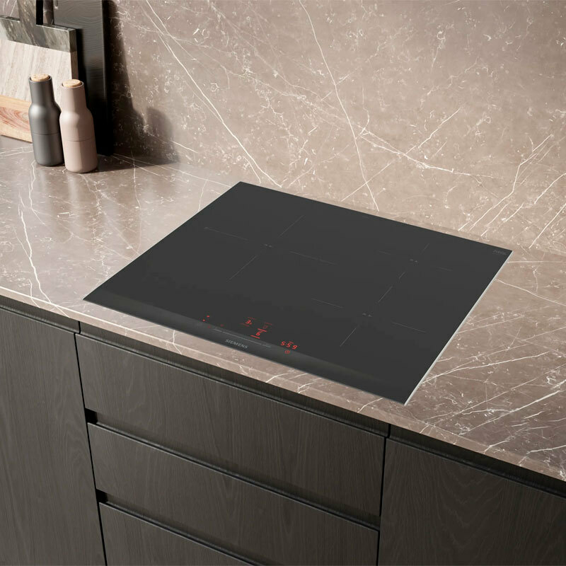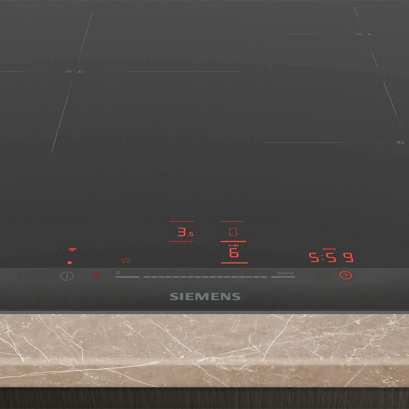 *¡¡Control táctil deslizante:!! Cuando eliges una placa de cocción, ¿buscas la máxima simplicidad? Olvídate de los mandos complicados. Con el control touchSlider puedes ajustar la potencia de todas las zonas de cocción de la placa, simplemente deslizando el dedo. Elige entre 9 ajustes de cocción para encontrar la potencia ideal. *¡¡Home Connect:!! Descubre todas las posibilidades que ofrecen los electrodomésticos conectados e inteligentes de Siemens. Con conexión wifi y la aplicación Home Connect, muy fácil de usar, dispones de muchas opciones para integrarlos en tu hogar inteligente. Haz más cómoda tu vida y gana tiempo con funciones que van desde obtener automáticamente los ajustes para cocinar una receta hasta controlar tus electrodomésticos a distancia. *¡¡Frying sensor Pro:!! ¿No sería genial no tener que preocuparte por la temperatura del aceite cuando fríes? Basta con activar la función fryingSensor Pro y elegir una de las 11 opciones de temperatura para mantener el aceite a una temperatura constante. El sensor inteligente controla la temperatura y evita que se queme el aceite, para que tus fritos siempre queden perfectos. Así puedes dedicarte a otras tareas en la cocina sin tener que preocuparte de la temperatura del aceite. *¡¡Extracción automática:!! ¿Quieres descubrir un nuevo nivel de comodidad en la cocina? Por ejemplo, que la campana se ajuste automáticamente en función de lo que estás cocinando. Lo llamamos extracción automática: La velocidad de extracción se adapta a la temperatura y potencia de la placa de cocción. Una vez terminas de cocinar, la campana se apaga automáticamente cuando ha eliminado todo el humo y olores. Para acceder a esta práctica función, solo tienes que vincular la placa y la campana a tu cuenta de Home Connect. *¡¡Botón favorito:!! ¿Y si tu placa de cocina se adaptara a ti, en lugar de adaptarte tú a ella? Con el botón Favorito es muy fácil: por ejemplo, puedes controlar la campana desde la placa de cocina. O integrarla en tu entorno de hogar inteligente y utilizar el botón Favorito para activar otras funciones, como las luces, desde la placa. Para acceder a la función “Favoritos”, solo tienes que vincular la placa de cocina a tu cuenta de Home Connect. *¡¡Un mundo de recetas:!! ¿Se te acaban las ideas para preparar tus menús? Tenemos la solución: accede a un mundo de recetas deliciosas que se adaptan a tus gustos y estilo de vida. Solo tienes que elegir un plato y los ajustes de cocción se transferirán automáticamente a la placa. Prepara fácilmente recetas deliciosas para dar variedad a tus menús. Para disfrutar de esta función, solo tienes que vincular el horno a tu cuenta de Home Connect. *¡¡Asistente Frying sensor conc ontrol por voz:!! ¿A veces no tienes clara cuál es la temperatura adecuada para cocinar un plato? Pregúntaselo a Alexa: tiene las respuestas que necesitas. Gracias al asistente fryingSensor Pro, siempre podrás cocinar tus platos a la temperatura perfecta. *¡¡Sistema cookConnect:!! ¿Alguna vez te ha pasado que llevas un rato cocinando y te das cuenta de que has olvidado encender la campana? Con el sistema cookConnect no te ocurrirá, porque la campana se activa y desactiva automáticamente cuando enciendes la placa y se regula sola a medida que cocinas. Ya no tendrás que preocuparte de encender o apagar la campana, ni por dejar manchas al tocar los controles con las manos sucias. Solo tienes que conectar la campana y la placa mediante la aplicación Home Connect. Céntrate en cocinar y no estés pendiente de encender o apagar la campana. *¡¡Función Powerboost:!! La función powerBoost aumenta hasta un 50 % la potencia de una zona de inducción. Así puedes calentar las ollas hasta un 35 % más rápido. Dedica menos tiempo a esperar y más a remover, sazonar y servir tus mejores platos. *¡¡Función pausa:!! ¿Estás cocinando y llaman a la puerta o llora el bebé? Tómate un respiro: con la función Pausa, puedes detener la cocción y bloquear todos los botones de la placa con solo pulsar una vez. Así puedes atender cualquier imprevisto que surja. Puedes retomar la cocción como si nada hasta 10 minutos después. ¡Disfruta tu nueva flexibilidad! *¡¡Programación con desconexion automática:!! La desconexión automática apaga la zona cuando el tiempo seleccionado ha finalizado. *¡¡Seguro para niños:!! Con el seguro para niños, puedes proteger la placa de inducción de forma sencilla y rápida contra manipulaciones no autorizadas. Basta con pulsar un botón para bloquear las funciones de la placa. Y se desactiva manteniendo pulsado el mismo botón de nuevo durante unos segundos. *¡¡Diagnostico remoto:!! Si hay algún problema con tu placa, Home Connect ofrece la cómoda posibilidad de diagnosticarlo a distancia. Con tu permiso, el servicio de atención al cliente de Siemens accede al dispositivo conectado para detectar el error. Si no se puede solucionar de inmediato y es necesaria una visita personal, el técnico profesional de Siemens llegará perfectamente preparado y con los repuestos necesarios.