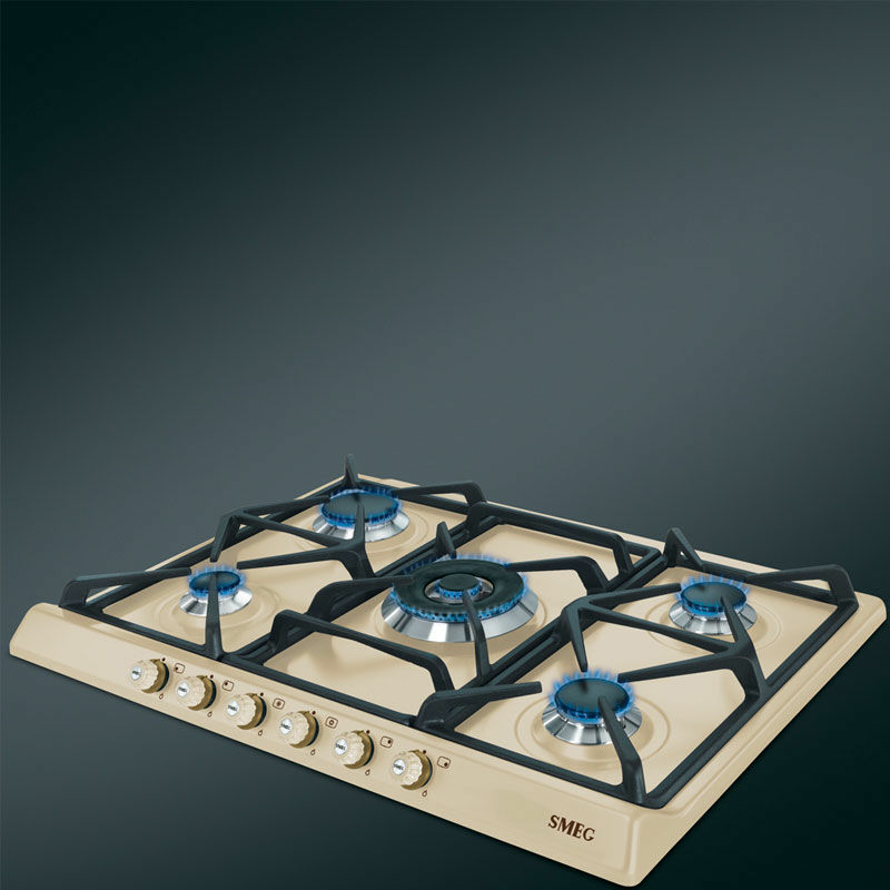 Posterior Izquierda - Gas - Auxiliar - 1100 W *Anterior izquierda - Gas - Rápido - 2600 W *Central - Gas - Ultrarápido de doble mando - 5000 W *Posterior Derecha - Gas - Semirápido - 1700 W *Anterior Derecha - Gas - Semirápido - 1700 W