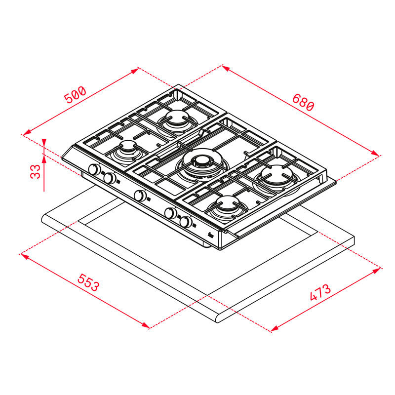 Placa gas Teka EX70.1 5G AI AL DR CI 58 cm