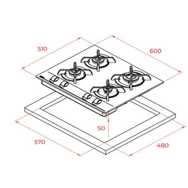 Seguridad corte de gas,Encendido automático en el mando,Marco biselado