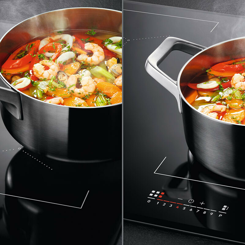 Cocina con ollas y sartenes de todos los tamaños: La placa Serie 6000 TotalFlex detecta automáticamente las ollas y sartenes de distintas formas y tamaños y crea una zona de cocción dedicada para ellos. Te ofrece la libertad de mover ollas y sartenes casi en cualquier lugar en su superficie de vidrio sensible. - Usa ollas y sartenes de todos las formas y tamaños con TotalFlex: TotalFlex te permite cocinar con ollas y sartenes de distintas formas y tamaños. También puedes colocar, mover y organizar ollas y sartenes casi en cualquier lugar gracias a la gran superficie de cristal sensible de la placa. - ActiveTouch, zonas de cocción que se iluminan automáticamente: ActiveTouch ilumina automáticamente el panel de control de la zona donde hayas situado el recipiente de cocción. Todo lo que tienes que hacer es ajustar la temperatura que desees. Una forma intuitiva de cocinar sobre la placa de inducción. - Hob2Hood®: La campana extractora manos libres La función Hob2Hood® conecta la placa y la campana. La campana de cocina ajusta automáticamente la velocidad del ventilador en función de la temperatura, sin necesidad de mover un dedo. Para una extracción potente cuando estás dorando la comida. Y para una extracción silenciosa al hervir a fuego lento. - Calor más rápido con PowerBoost: Un chorro de rapidez. Se acabó el esperar mucho a que rompa a hervir el agua. La función PowerBoost produce un golpe de calor instantáneo. PowerBoost es perfecta para aquellas tareas que requieren poder hervir rápidamente en un utensilio de gran tamaño. - Cada zona de cocción. Con temporizador individual Cuando se utiliza una zona de cocción, el temporizador se maneja rápida y cómodamente en la pantalla táctil. No hay que pasar por menús ni otras zonas. Y como cada plato puede temporizarse con precisión, tienes un control absoluto sobre el proceso de cocción