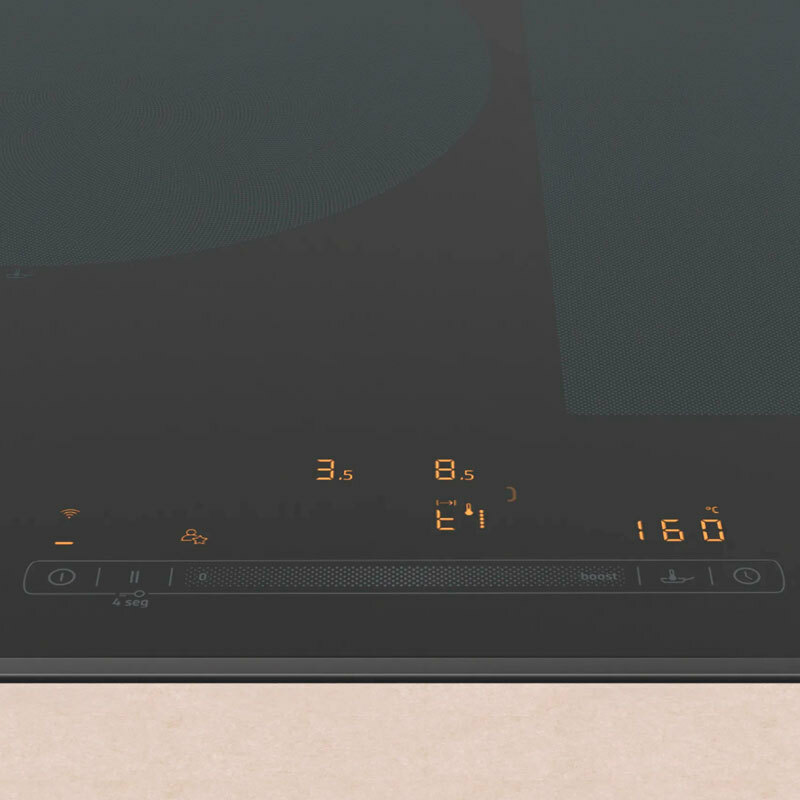 Control placa-campana: control de la campana desde la placa de inducción y AutoFuncionamiento de la campana en función del uso de la placa. Control remoto vía App Home Connect: Descarga de recetas adicionales, Diagnóstico remoto y Control por voz. Botón Favoritos: memoriza tus ajustes más usados.
