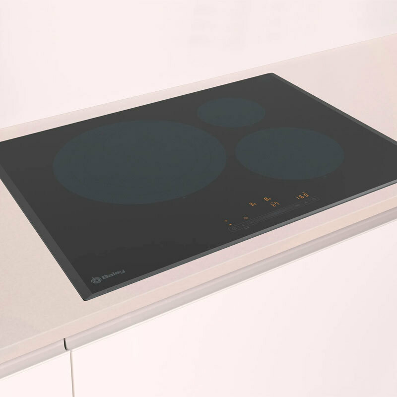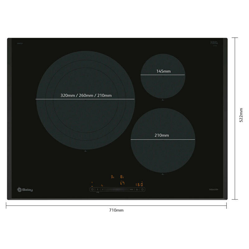 *¡¡Placas de inducción: rápidas para cocinar y fáciles de limpiar:!! Las placas de Inducción Balay ofrecen unas extraordinarias prestaciones y una asombrosa facilidad a la hora de limpiarlas, ya que lo que se calienta no es la superficie de la placa sino el recipiente; por eso los alimentos derramados no se queman. Y por esa misma regla, tampoco te quemarás tú. Y para sacarle el máximo partido, la batería de cocina Balay, obtiene toda la potencia de la zona de cocción y la distribuye de forma homogénea por toda la superficie. *¡¡Ancho 70 cm: medidas que se adaptan a cualquier espacio:!! ¿Te gustaría tener más espacio cuando cocinas? Esta placa te ofrecen un espacio más amplio que la medida estándar y por supuesto, las mejores prestaciones para que disfrutes cocinando. Como el Control de Temperatura de Aceite que te permitirá freír los alimentos al punto perfecto o la zona extra gigante de 32 cm que te ofrecerá una gran versatilidad en cuanto a los tamaños de los recipientes con los que quieras cocinar. *¡¡Zona extra gigante de 32 cm: zona de cocina adaptable al recipiente:!! Con estas placas el número de invitados ya no será un problema y el tamaño del recipiente tampoco. La zona extra gigante ofrece una gran variedad de diámetros que permiten adaptarse a cualquier número de comensales. Podrás preparar paella para dos o para 10; o hacer migas para toda la familia y poner luego la cafetera italiana. Está claro que el tamaño importa, aunque lo verdaderamente importante es la versatilidad. *¡¡Función “Sprint”: un calentamiento para batir récords:!! Pongamos que el tiempo de cocción de la pasta son 6 minutos, pero… ¿qué hay del tiempo que necesitas previamente para hervir el agua? Con la función “Sprint” la potencia de la zona de cocción aumenta durante 10 minutos; de esta manera puedes acelerar el calentamiento de grandes cantidades de líquidos, ya sea hervir el agua para la pasta, o calentar el caldo. *¡¡Programación: que una receta salga bien o mal es cuestión “de tiempo”:!! Con la función “Programación de tiempo de cocción para cada zona”, podrás tenerlo todo bajo tu control, incluso cuando prepares varios platos a la vez. Porque si sabes que tu receta necesita 20 minutos, no te tienes que preocupar más, simplemente tienes que programar el tiempo de cocción, y estará listo cuando tú necesites. Y todo para que tus platos estén en su punto justo. *¡¡Seguridad para niños con opción de bloqueo permanente o temporal: evita descuidos:!! Cuando no estás cocinando, no tienes por qué preocuparte de la placa. La función de seguridad para niños te permite bloquear la placa de forma permanente o temporal, para que los más pequeños no puedan ponerla en marcha o manipular los controles, y puedas disfrutar de tu placa con total tranquilidad.