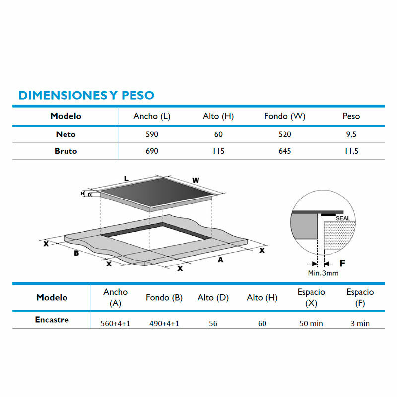 Placa Inducción Midea MCIT7118B3A2C 60 cm