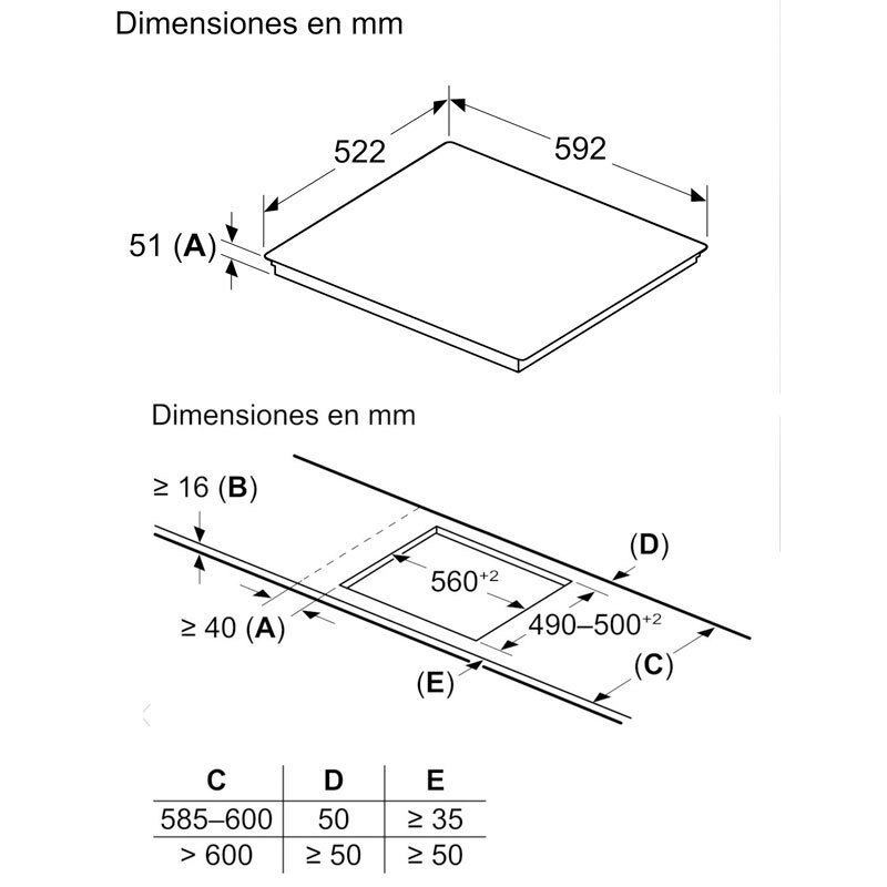 via MyButton: abra el universo inteligente desde su placa de cocción (necesario servicio asociado) - Aparato actualizable (vía app Home Connect): mantén el aparato siempre actualizado con la última versión del software - Encimera de espesor mínimo: 16 mm