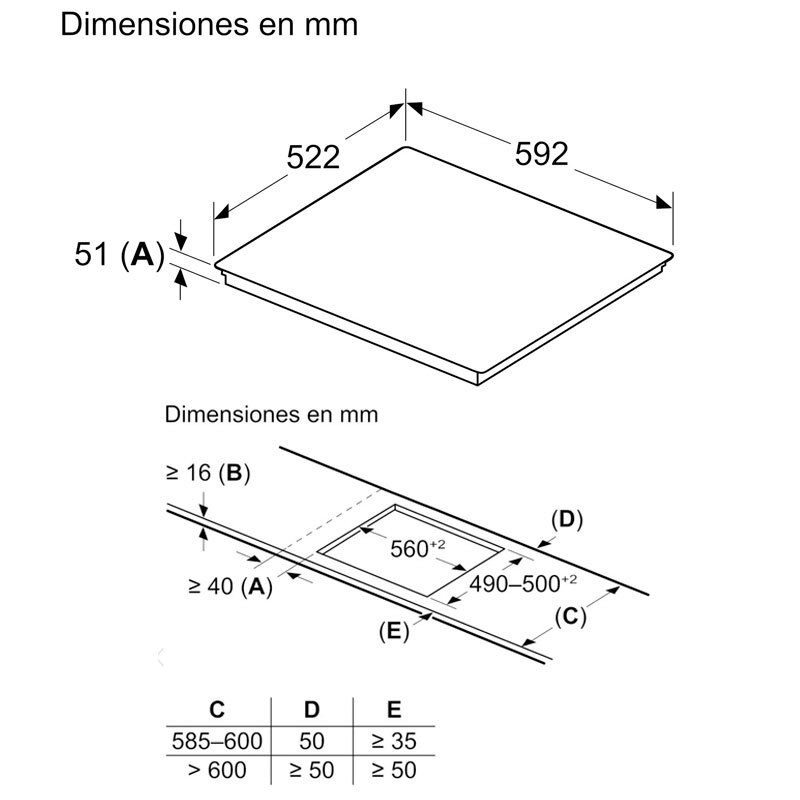 Aparato actualizable (vía app Home Connect): mantén el aparato siempre actualizado con la última versión del software - Encimera de espesor mínimo: 16 mm