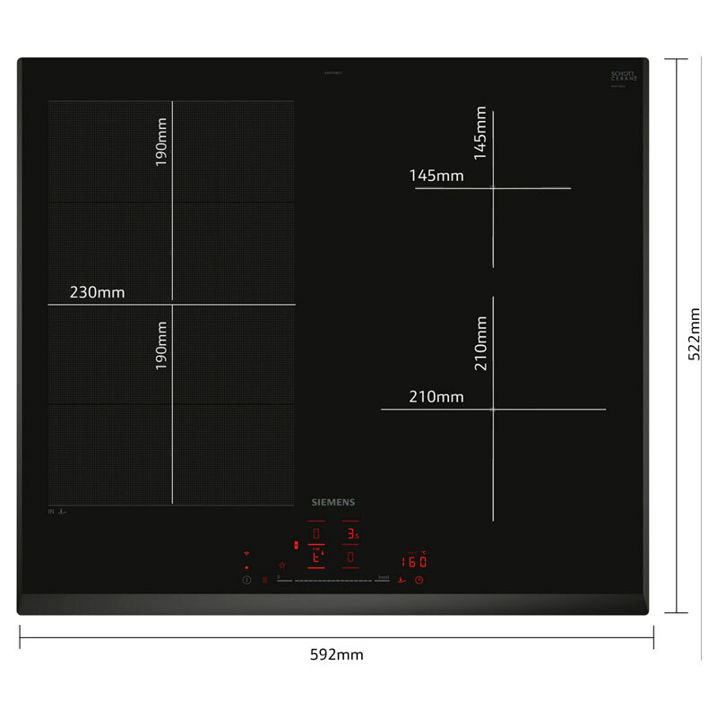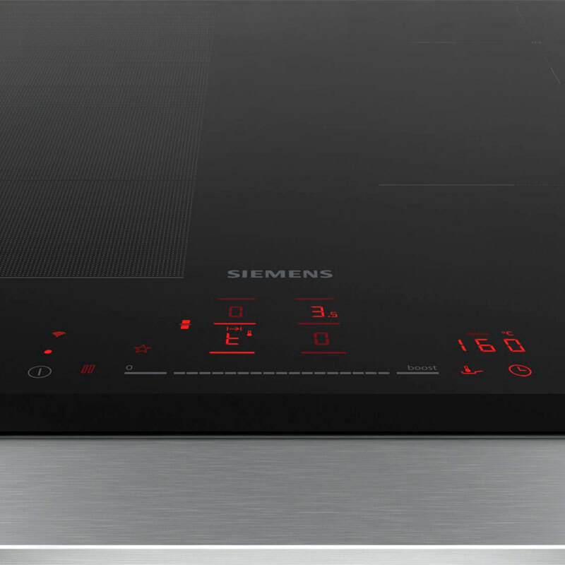 flexInducción La placa que se adapta a tus recipientes. La función flexInducción consiste en una zona de cocción flexible que se adapta automáticamente a recipientes grandes (de hasta 24 cm de diámetro). La placa detecta el tamaño del recipiente y activa la superficie de inducción necesaria para obtener un calentamiento uniforme. También es perfecta para usar planchas o teppanyakis de hasta 40 cm de largo. - Control touchSlider Controla la temperatura deslizando el dedo. Cuando eliges una placa de cocción, ¿buscas la máxima simplicidad? Olvídate de los mandos complicados. Con el control touchSlider puedes ajustar la potencia de todas las zonas de cocción de la placa, simplemente deslizando el dedo. Elige entre 9 ajustes de cocción para encontrar la potencia ideal. - Home Connect Haz tu vida más cómoda con una placa inteligente. Descubre todas las posibilidades que ofrecen los electrodomésticos conectados e inteligentes de Siemens. Con conexión wifi y la aplicación Home Connect, muy fácil de usar, dispones de muchas opciones para integrarlos en tu hogar inteligente. Haz más cómoda tu vida y gana tiempo con funciones que van desde obtener automáticamente los ajustes para cocinar una receta hasta controlar tus electrodomésticos a distancia. - fryingSensor Pro Se acabaron los fritos demasiado hechos. ¿No sería genial no tener que preocuparte por la temperatura del aceite cuando fríes? Basta con activar la función fryingSensor Pro y elegir una de las 11 opciones de temperatura para mantener el aceite a una temperatura constante. El sensor inteligente controla la temperatura y evita que se queme el aceite, para que tus fritos siempre queden perfectos. Así puedes dedicarte a otras tareas en la cocina sin tener que preocuparte de la temperatura del aceite. - flexMotion Transferencia automática de los ajustes. ¿qué zona de cocción se tendría que usar? Con la función flexMotion, los sensores de la placa detectan automáticamente la forma y el tamaño de las ollas y sartenes, combinando o separando las zonas de cocción al instante. Y si mueves tus recipientes, los ajustes se transferirán con ellos - Extracción automática La campana que se adapta automáticamente a tu placa de cocción. ¿Quieres descubrir un nuevo nivel de comodidad en la cocina? Por ejemplo, que la campana se ajuste automáticamente en función de lo que estás cocinando. Lo llamamos extracción automática: La velocidad de extracción se adapta a la temperatura y potencia de la placa de cocción. Una vez terminas de cocinar, la campana se apaga automáticamente cuando ha eliminado todo el humo y olores. Para acceder a esta práctica función, solo tienes que vincular la placa y la campana a tu cuenta de Home Connect. - Botón Favorito Cocinar es algo muy personal. ¿Y si tu placa de cocina se adaptara a ti, en lugar de adaptarte tú a ella? Con el botón Favorito es muy fácil: por ejemplo, puedes controlar la campana desde la placa de cocina. O integrarla en tu entorno de hogar inteligente y utilizar el botón Favorito para activar otras funciones, como las luces, desde la placa. Para acceder a la función “Favoritos”, solo tienes que vincular la placa de cocina a tu cuenta de Home Connect. - Un mundo de recetas Descubre un nuevo mundo de recetas deliciosas. ¿Se te acaban las ideas para preparar tus menús? Tenemos la solución: accede a un mundo de recetas deliciosas que se adaptan a tus gustos y estilo de vida. Solo tienes que elegir un plato y los ajustes de cocción se transferirán automáticamente a la placa. Prepara fácilmente recetas deliciosas para dar variedad a tus menús. Para disfrutar de esta función, solo tienes que vincular el horno a tu cuenta de Home Connect. - Asistente fryingSensor Pro con control por voz “Alexa, dile a mi placa cómo cocinar...” ¿A veces no tienes clara cuál es la temperatura adecuada para cocinar un plato? Pregúntaselo a Alexa: tiene las respuestas que necesitas. Gracias al asistente fryingSensor Pro, siempre podrás cocinar tus platos a la temperatura perfecta. - Función powerBoost Más potencia cuando la necesitas. La función powerBoost aumenta hasta un 50 % la potencia de una zona de inducción. Así puedes calentar las ollas hasta un 35 % más rápido. Dedica menos tiempo a esperar y más a remover, sazonar y servir tus mejores platos. - flexMotion Deja que la placa se encargue de todo. La función flexMotion recuerda los ajustes de cada recipiente, de modo que puedes moverlos con libertad de un sitio a otro de la placa de cocción. Los ajustes de temperatura y tiempo se transfieren automáticamente a la nueva zona de cocción donde has colocado el recipiente. Cocina con más libertad sin tener que ajustar constantemente los mandos. - Función Pausa Cocina con más flexibilidad. ¿Estás cocinando y llaman a la puerta o llora el bebé? Tómate un respiro: con la función Pausa, puedes detener la cocción y bloquear todos los botones de la placa con solo pulsar una vez. Así puedes atender cualquier imprevisto que surja. Puedes retomar la cocción como si nada hasta 10 minutos después. ¡Disfruta tu nueva flexibilidad! - Programación con desconexión automática La desconexión automática apaga la zona cuando el tiempo seleccionado ha finalizado. - Seguro para niños No hay ningún peligro: seguro para niños. Con el seguro para niños, puedes proteger la placa de inducción de forma sencilla y rápida contra manipulaciones no autorizadas. Basta con pulsar un botón para bloquear las funciones de la placa. Y se desactiva manteniendo pulsado el mismo botón de nuevo durante unos segundos. - Inducción Rápidas, seguras y fáciles de limpiar: placas de inducción de Siemens. Caliente al instante. Fría al instante. Experimenta los beneficios de las placas de inducción de Siemens. El calor se trasfiere directamente a los recipientes y a su contenido a través de la inducción, sin calentar la placa, consiguiendo un menor tiempo de 