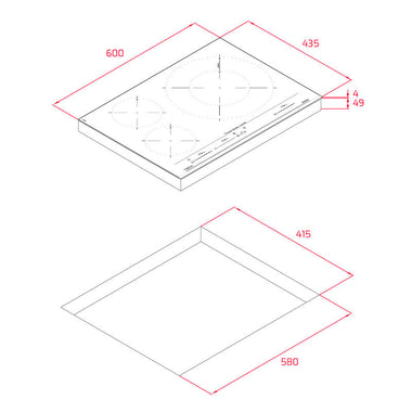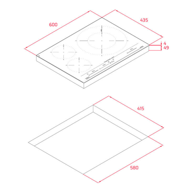 3 Zonas de inducción: - 2 Zonas de Ø 150 mm - 1 Zona de doble circuito de Ø 180 / 320 mm