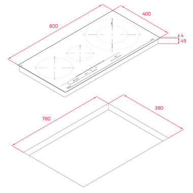 3 Zonas de inducción: - 1 Zona de Ø 150 mm - 1 Zona de Ø 215 mm con sensores de temperatura - 1 Zona de doble circuito de Ø 180 / 320 mm