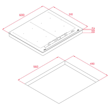 8 zonas de inducción - 7 zonas de cocción: - 4 zonas de 263 x 195 mm - 2 zonas Flex de 263 x 390 mm - 1 zona Full Flex de 525 x 390mm
