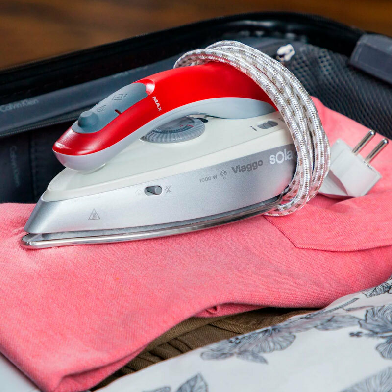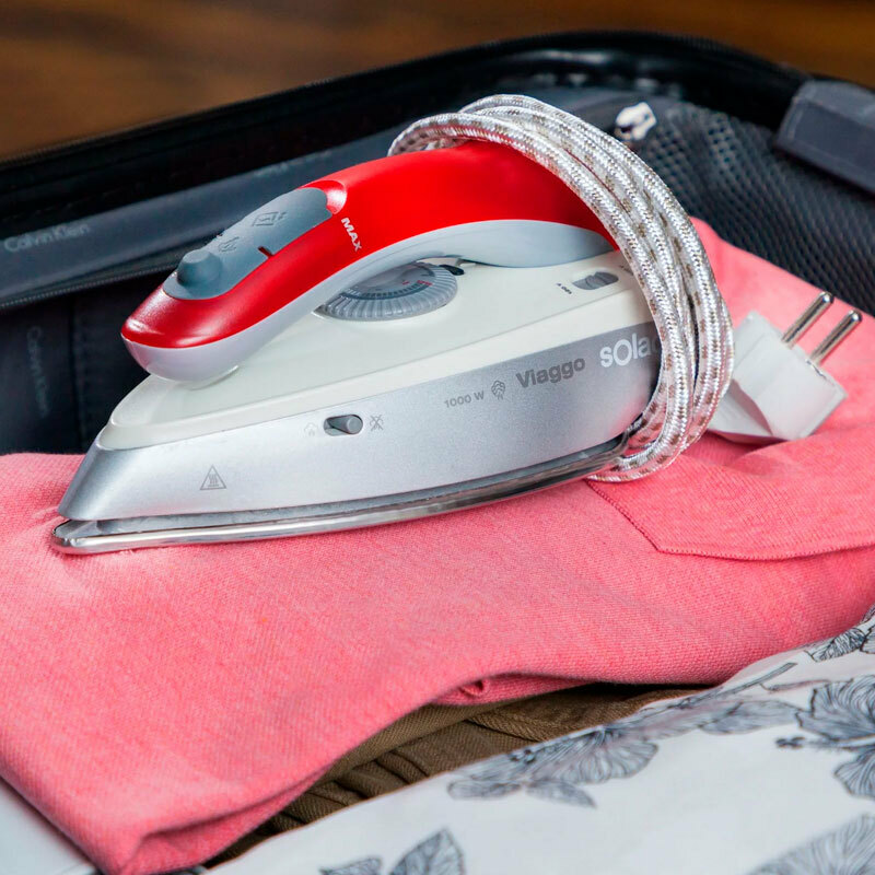 Potencia y rapidez. Máxima potencia de 1100W para que no pierdas el tiempo durante tu viaje. Plancha tus prendas de forma práctica y rápida con la plancha de viaje Viaggio Pro de Solac. - Resultados óptimos al momento. Gracias a su golpe de vapor de 45g/min eliminaras hasta las arrugas más difíciles. Cuenta con un vapor continuo de 0 a 10g/min. - Plancha, higieniza y desinfecta. El potente vapor de la plancha consigue destruir el 99,9999% de virus y bacterias, de forma eficaz y fiable con una sola pasada. - Bi-voltaje. Cuenta con un selector de tensión para adaptarse a las distintas instalaciones eléctricas de cada país.