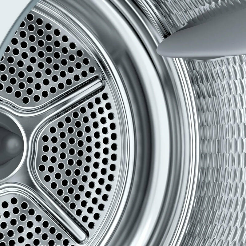 Condensador con limpieza automática: Las secadoras con bomba de calor y condensador autolimpiante de Bosch protegen tu ropa y consumen menos energía. El condensador se limpia automáticamente, hasta cuatro veces durante el proceso de secado. Eso permite mantener la máxima eficiencia energética, ciclo tras ciclo. Un secado eficiente que deja la ropa suave y perfecta. - Eliminación automática de pelusas: Las secadoras con condensador autolimpiante cuidan la ropa a la vez que reducen el consumo de energía. El condensador se limpia automáticamente, hasta cuatro veces durante el proceso de secado, para eliminar las pelusas y mantener la máxima eficiencia energética. Estas secadoras con bomba de calor de Bosch están diseñadas para ofrecer un mínimo consumo y el mejor cuidado de las prendas. - Secado eficiente y máximo cuidado de tus prendas: Cambia para siempre la forma de secar la ropa con nuestra innovadora tecnología de bomba de calor. Aprovecha un calor residual para secar la ropa de forma más delicada, consumiendo menos energía. - Detecta automáticamente cuando la ropa de esta seca: Coloca hasta diez kilos de ropa en tu secadora o lavadora-secadora y la función AutoDry la secará como desees: a punto para planchar o incluso lista para doblar y guardar. Dispone de unos sensores inteligentes que miden de forma continua la temperatura y la humedad con el fin de evitar que la ropa se caliente en exceso y se reseque. ¡Consigue resultados perfectos en todo momento! - Secado que cuida los tejidos: El sistema de secado delicado cuida la ropa al proyectar aire caliente de manera suave y uniforme. Al mismo tiempo, las palas curvadas del tambor hacen que las prendas nunca se aplanen, por lo que no se forman pliegues ni arrugas. El resultado es un secado suave de la ropa, que queda lisa y casi no necesita plancha. - No te preocupes por las arrugas: Puede que planchar no sea tu tarea doméstica favorita o no tengas tiempo para hacerlo. En ese caso, nuestras secadoras con bomba de calor y la función antiarrugas son tus mejores aliadas. Cuando termina el programa de secado, alisa suavemente las prendas para evitar que se formen arrugas. Esto hace que tengas que planchar mucho menos. ¿Verdad que es cómodo? - Opción de media carga: La opción de media carga adapta los ajustes de la secadora y la duración del programa a las coladas con poca ropa. - Secado rápido, secado perfecto: resultados de secado perfectos a plena carga unos 35 minutos más rápido. - Secado rápido 40 min: El programa de secado rápido en 40 minutos está especialmente indicado para coladas pequeñas, formadas por prendas finas y sintéticas que requieren rapidez y delicadeza. - El tambor con giro reversible evita los enredos: ¡Se acabaron los enredos en la secadora! El programa para ropa de cama con tambor con giro reversible de las secadoras Bosch mueve la colada en ambas direcciones, para evitar que las sábanas y otras prendas grandes se enreden con las pequeñas. Así puedes secar la ropa de cama junto con otros tipos de prendas y obtener un secado perfecto y sin enredos.
