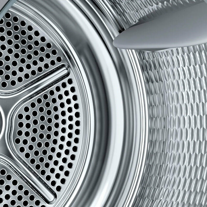 *¡¡Detecta automáticamente cuando la ropa está seca:!! Coloca hasta diez kilos de ropa en tu secadora o lavadora-secadora y la función AutoDry la secará como desees: a punto para planchar o incluso lista para doblar y guardar. Dispone de unos sensores inteligentes que miden de forma continua la temperatura y la humedad con el fin de evitar que la ropa se caliente en exceso y se reseque. ¡Consigue resultados perfectos en todo momento! *¡¡Condensador con limpieza automática de pelusas:!! Las secadoras con bomba de calor y condensador autolimpiante de Bosch protegen tu ropa y consumen menos energía. El condensador se limpia automáticamente, hasta cuatro veces durante el proceso de secado. Eso permite mantener la máxima eficiencia energética, ciclo tras ciclo. Un secado eficiente que deja la ropa suave y perfecta. *¡¡Opción de media carga:!! La opción de media carga adapta los ajustes de la secadora y la duración del programa a las coladas con poca ropa. *¡¡Una secadora muy silenciosa y duradera:!! Las innovadoras paredes laterales antivibraciones están especialmente diseñadas para proporcionar más estabilidad y reducir las vibraciones. Además, el aislamiento mejorado reduce el nivel de ruido, lo que hace que las secadoras Bosch sean increíblemente silenciosas, durante todo el programa. *¡¡El tambor con giro reversible evita los enredos:!! ¡Se acabaron los enredos en la secadora! El programa para ropa de cama con tambor con giro reversible de las secadoras Bosch mueve la colada en ambas direcciones, para evitar que las sábanas y otras prendas grandes se enreden con las pequeñas. Así puedes secar la ropa de cama junto con otros tipos de prendas y obtener un secado perfecto y sin enredos. *¡¡Seca la ropa y cuida el planeta:!! Nuestras secadoras con bomba de calor usan el nuevo agente refrigerante R290, uno de los más sostenibles que existen. De esta manera, cuando secas la ropa también estás ayudando a proteger el planeta.