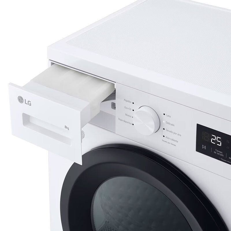 Bomba de Calor Seca y cuida tu ropa. Cuida tus prendas con tecnología avanzada que seca con suavidad, protegiendo los tejidos y alargando su vida útil. - Sensor de Secado Detecta automáticamente el tiempo de secado. El sensor de secado detecta la humedad en tus prendas y ajusta automáticamente el tiempo de secado para ofrecerte comodidad y eficiencia en cada colada. - Bloqueo para niños Evita que cambien la configuración de tu secadora. Evita que los niños cambien la configuración y mantén el control total de tu secadora.