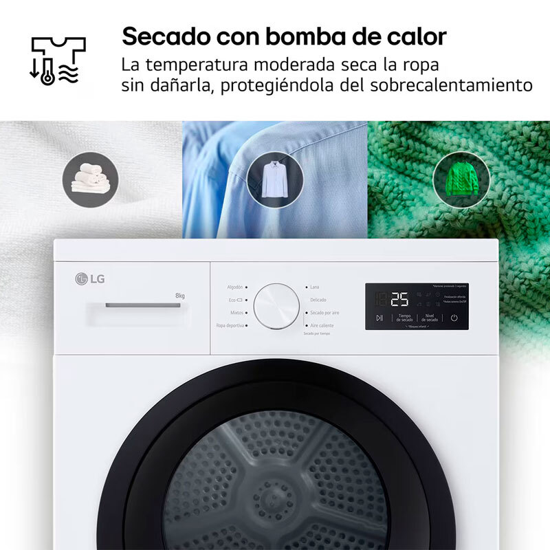 *Secadora con bomba de calor *Blanco - 8 kg *Clase,protegiendo los tejidos y alargando su vida útil
