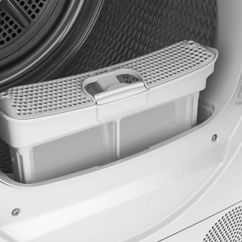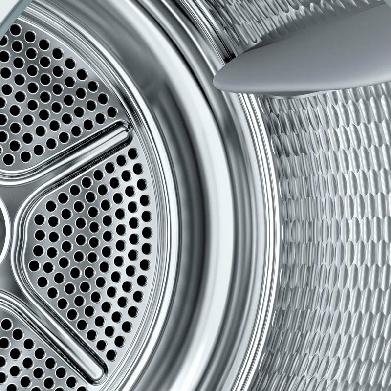 Recomendación de carga Control electrónico de secado: sensor de humedad Tambor softDry para el cuidado de la ropa Paneles laterales antivibración Iluminación interior del tambor Bloqueo seguridad para niños Señal acústica de fin de programa ajustable en volumen Posibilidad de instalación bajo encimera en muebles de altura 85 cm o más