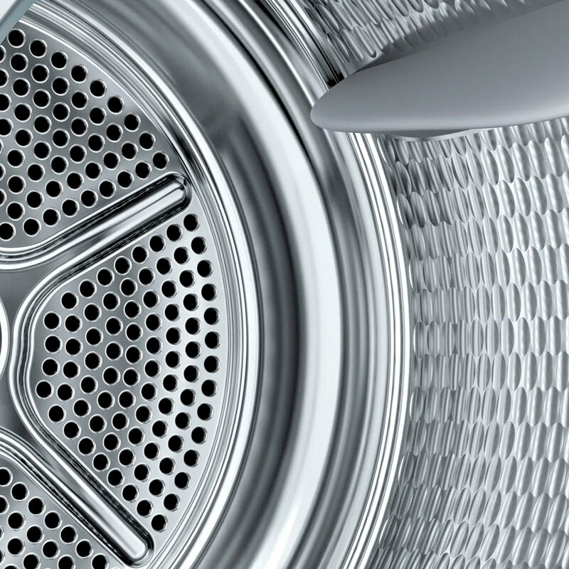 Limpia el filtro dela secadora sin esfuerzo: El filtro de fácil limpieza permite eliminar la suciedad y la cal sin esfuerzo. - Secado eficiente de tus prendas: Cuando se trata de ahorrar recursos y cumplir con los más altos requisitos en resultados de secado, es posible que tengas que hacer sacrificios. Gracias a nuestro sistema de ahorro de energía, basado en tecnología de bomba de calor y el motor iQdrive, nuestras secadoras alcanzan la clase energética A ++. En todo momento y en cualquier lugar, no es necesario hacer concesiones. Puedes confiar en nuestras secadoras Siemens con etiqueta energética A++ para obtener resultados de secado eficientes y excelentes en cualquier circunstancia. - Secado suave y de precisión: Una serie de sensores inteligentes controlan las prendas en todo momento para garantizar un secado uniforme y delicado, que además ahorra energía. Los sensores de temperatura previenen que los tejidos se calienten en exceso, mientras que los sensores de humedad evitan que se resequen demasiado. De esta forma, la ropa se seca con suavidad y precisión, por lo que no tienes que planchar tanto. - Secado delicado para la ropa exterior: Las prendas de exterior deben secarse con cuidado para mantener sus propiedades aislantes. Las costuras pegadas, los revestimientos de membrana y los tejidos impermeables son especialmente sensibles al calor. El programa outdoor emplea una temperatura baja y mide la humedad en todo momento para que se sequen perfectamente. - Seca coladas pequeñas de forma rápida y suave: El programa Rápido 40 min seca de forma suave coladas pequeñas (hasta 1 kg) en solo 40 minutos. Controla en todo momento los niveles de humedad, por lo que es ideal para prendas sintéticas, de algodón ligero o mixtas que no sean delicadas. Si lo combinas con el programa de lavado Rápido 15 min, podrás tener la colada lista en menos de una hora. - Secado suave y delicado: El sistema de tambor softDry protege tus prendas delicadas. El tambor cuenta con palas onduladas que distribuyen el flujo de aire de forma uniforme para mantener una temperatura constante. Esto hace que las prendas se deslicen en el interior del tambor como si flotaran en una burbuja de aire, evitando que se arruguen.