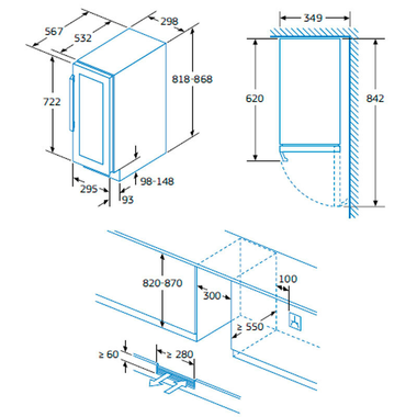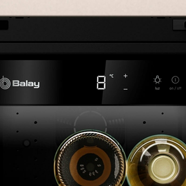 ["Iluminación LED con incremento gradual de la intensidad y encendido on/off.","4 Estantes para almacenar en horizontal las botellas","3 de ellos de madera de fresno americano para absorber las vibraciones"]