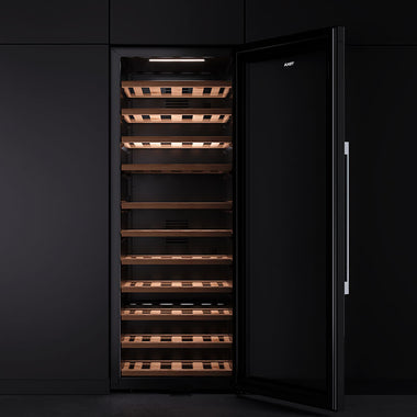 ["Iluminación interior LED","8 + 3 Estantes de madera extraíbles","Filtro de carbón activo para renovar y purificar el aire","Doble cristal tintado que protege de los rayos UV"]