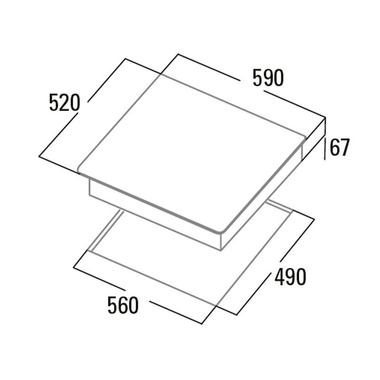 Izquierda: 1 zona gigante doble Ø 270/210 de 2.4/1.5kW - Derecha abajo: 1 zona Ø 180 de 1.8kW - Derecha arriba: 1 zona Ø 140 de 1.2kW